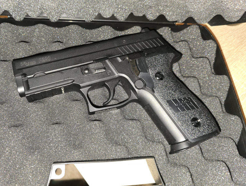 Hallo, biete hier eine Sig Sauer P229, 6mmBB, Gas an, in schwarz. Die waffe hat Blowback, hat keine gebrauchspuren, waffe ist aus Metall mit polymer body. Mit dabei ein Waffenkoffer. Was aussieht wie Flecken auf der waffe sind nur Öl Spuren von der Pflege.