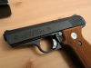 Zustand: Die Waffe befindet sich in einem gebrauchten Zustand mit den für das Alter üblichen Gebrauchs- und Lagerspuren, insbesondere weiße flecken an der brünierung sind vorhanden. Die Mechanik ist leichtgängig, die Federkraft ist gut. Die schönen Holzgriffschalen sind gut erhalten und verleihen der Pistole eine edle Optik.