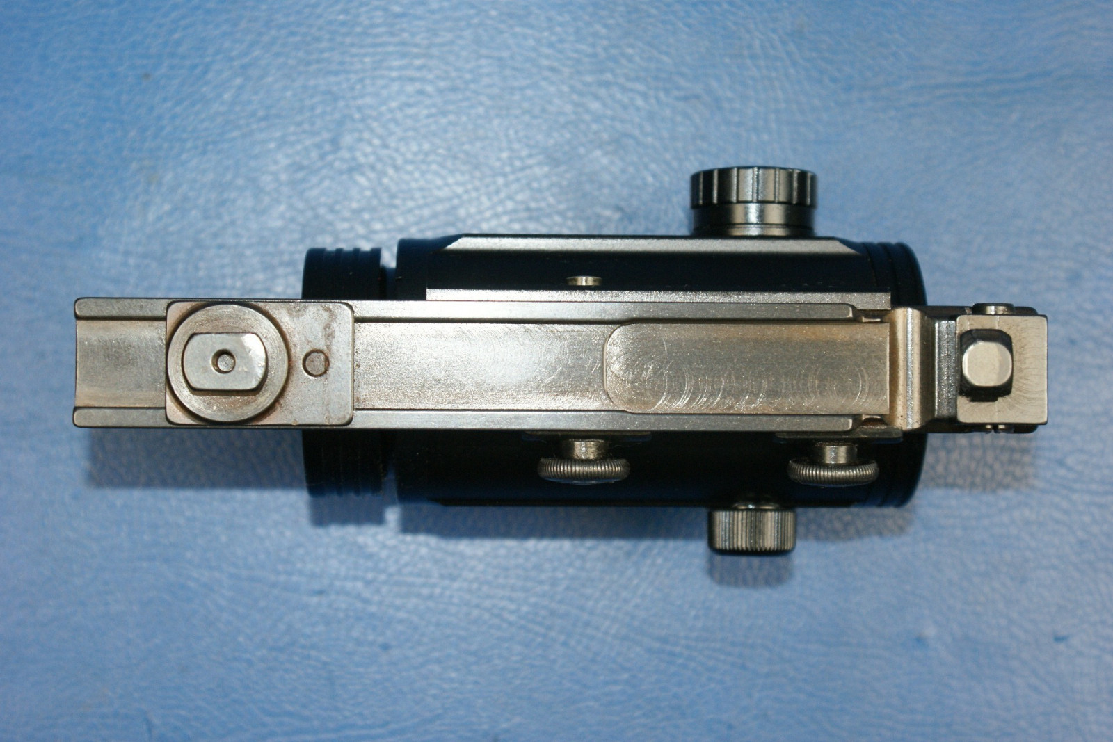 Auf einer Schiene angebracht für eine Schwenkmontage.