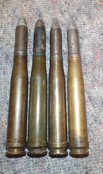 Biete hier aus meiner Sammlung die abgebildeten 4 stück 2 cm Flak 38 Hülsen mit Geschossen und Köpfen an.