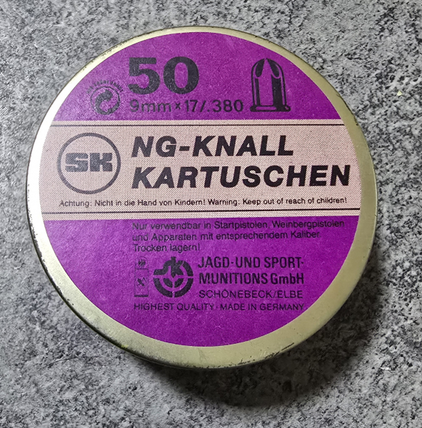 50 SK Schönebeck Platzpatronen 9mm RK in der Metalldose Selten