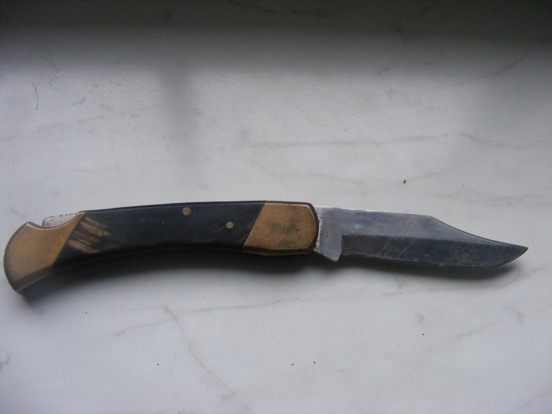 Gebe ich Taschenmesser im guten gebrauchten Zustand ab. Griffschalen aus Horn. Laut mündlichen Angaben meines Opas müsste es sich um ein BUCK handeln. Mit feststehender Klinge. Klingenlänge ca. 9 cm. Der Verkauf erfolgt als Privatverkauf unter Ausschluss jeglicher Sachmängelhaftung.