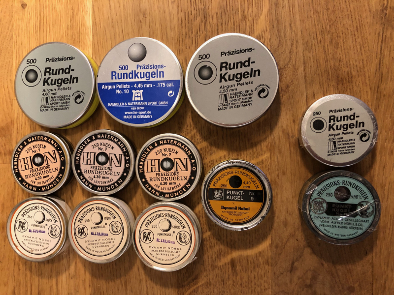 Großes Konvolut Haendler & Natermann / RWS Präzisions-Rundkugeln. Kugelgröße von 4,3 mm bis 4,6mm Alle Dosen originalversiegelt mit Ausnahme der beiden kleinen Döschen auf dem letzten Bild. Gesamt 3250 Kugeln plus die beiden Anbruchdöschen. Kugelgrößen auf den Detailbildern ersichtlich. Zu Konvoluten beantworten wir keine Fragen. Bitte beachten Sie die Bilder zum Gesamtzustand. Sie zahlen nur einmal Versandkosten, egal wieviel Artikel Sie pro Auktionsende erwerben!