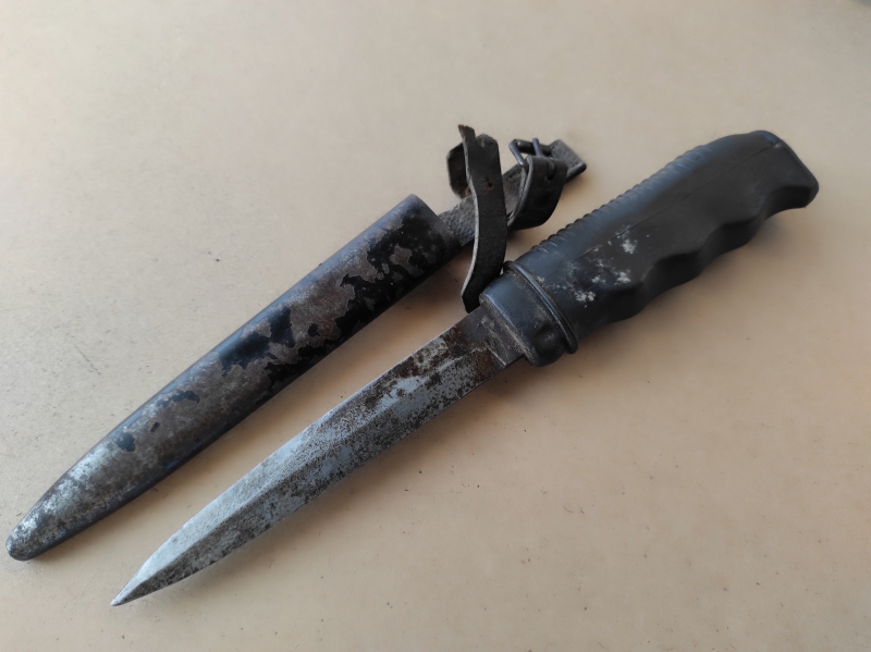 Zum Verkauf steht ein Grabendolch, unbekannt, Dachbodenfund (vermutlich Mariene???). Bitte alle Bilder genau anschauen. Auf Wunsch können weitere Bilder zugeschickt werden. Es handelt sich hier um einen Privatverkauf - daher keine Garantie und keine Rücknahme. Mit Ihrem Gebot bestätigen Sie, dass Sie sich zur Abnahme des Artikels verpflichten und auf Umtausch, Reklamation oder Rückgabe ausdrücklich verzichten. Versand außerhalb Deutschlands kostet mehr, bitte vorher immer nachfragen.