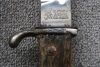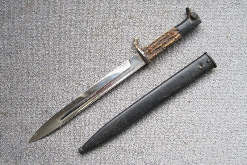 Biete hier dieses defekte Extra Seitengewehr der Wehrmacht für Gebirgsjäger an, mit original vernieteten Hirschhorn-Griffschalen, vernickelte Klinge mit Hersteller: Ernst Pack und Söhne, Solingen, Klingenlänge ca.24,5cm, Gesamtlänge ca.40cm, der Drücker ist defekt, Scheide ohne Tragehaken, das Griffstück korrodiert und teilweise schwarz überlackiert, schönes Belegstück, Fragen hierzu gerne per email, Auslandsversand bitte vorher erfragen, vielen Dank. Allen Bietern viel Erfolg !
