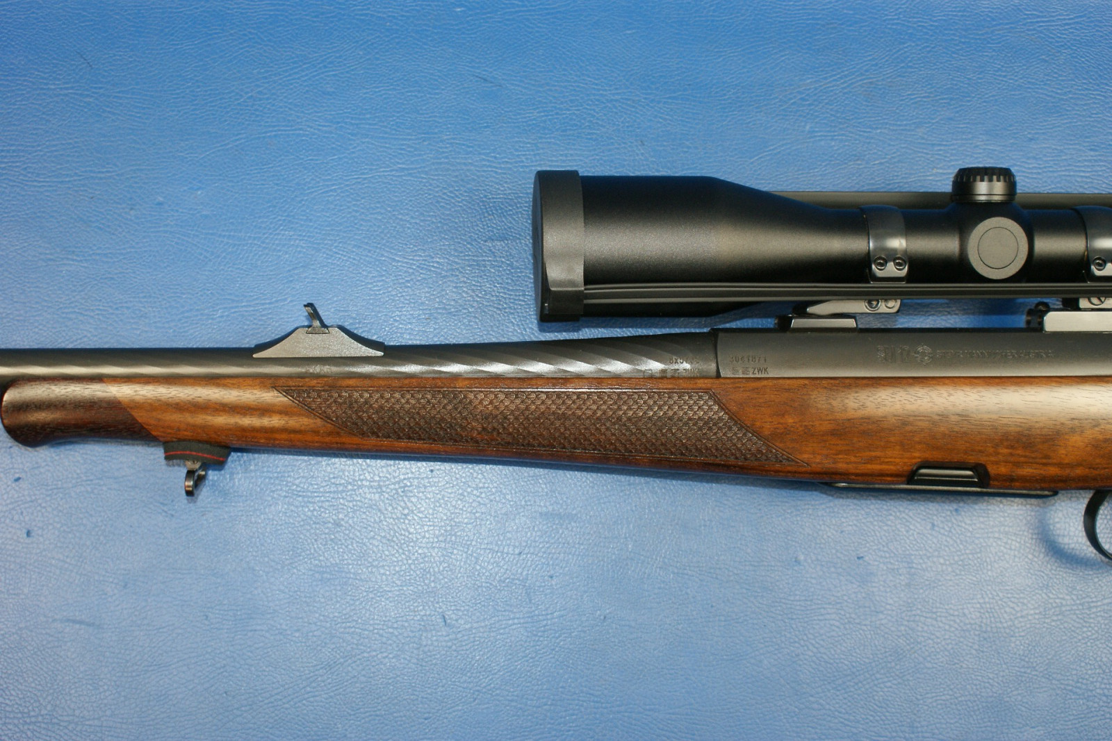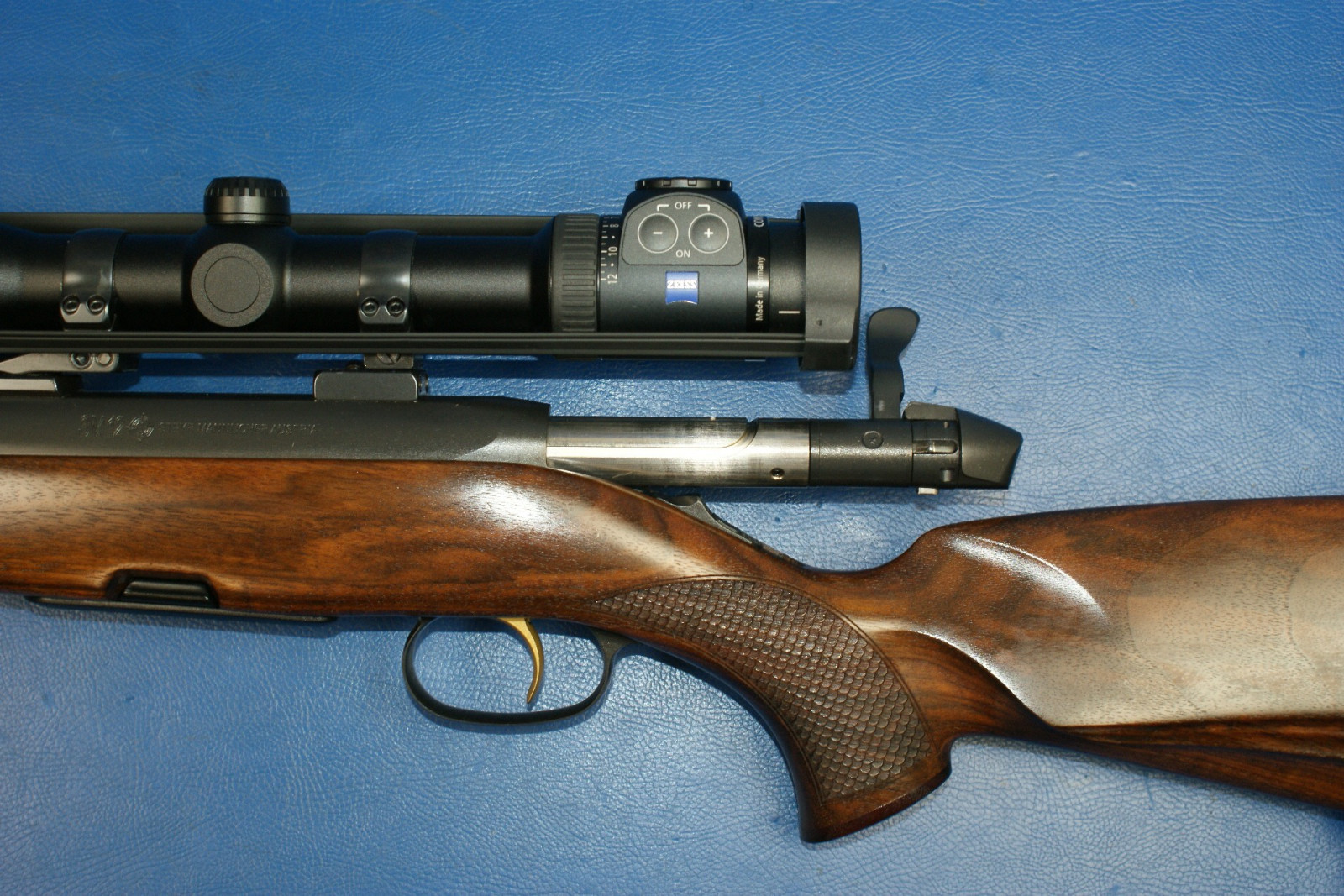 Lager- und Gebrauchsspuren. Waffe kaum geschossen. Absehen beleuchtet. Waffe muss eingeschossen werden - Glas wurde zum Funktionstest verstellt.