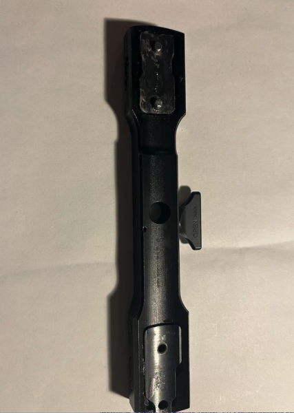 Ich verkaufe eine Dentler Grundschiene für die Sauer 202. Eine der Schrauben muss ausgetauscht werden, da sie nicht mehr ins Gewinde das Systems der Waffe greift.