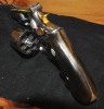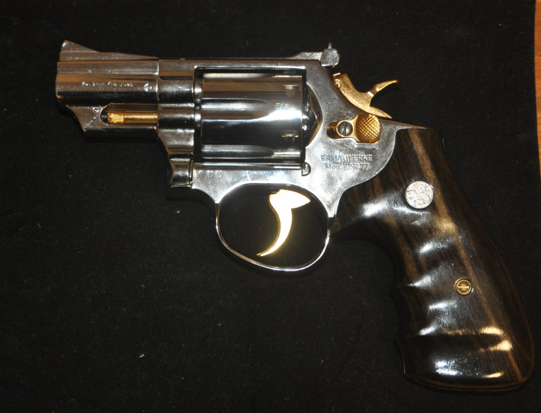 Top ERMA EGR 77 PTB 233, der Luxusklasse, verchromt und vergoldet. Vielleicht das ideale Weihnachtsgeschenk, für den Sammler, besonderer Artikel ;-). Möglicherweise war das eine Sonderanfertigung, für einen besonderen Kunden. Die Waffe wurde nie geschossen und selten bespielt. Die Waffe ist, wie immer, mit Ballistol Waffen Öl geschmiert, deshalb die Schmierspuren. Die Waffenfunktion ist absolut gegeben und die Haptik ist auch aufgrund des Edelgriffes, perfekt. Ich verkaufe sie nur, da ich das Teil, "später" nicht in ein Seniorenheim mitnehmen kann. Ich werde wohl demnächst alle meine "Waffen" verkaufen. ---------Hier einer der BESTEN und ZUVERLÄSSIGSTEN Revolver vom ehemaligen, legendären Hersteller scharfer Schusswaffen Erma. Die hier angebotene Waffe wurde zuerst als scharfes Modell Kaliber 0.38 konzipiert und gebaut. In den 80-er Jahren als es noch möglich und erlaubt war kam auch diese, freie PTB-Version auf den Markt. Selbstverständlich mit den gleichen qualitativen Eigenschaften des scharfen Modells, bis auf den scharfen Schuss. Cal. 9 mm Knall & Gas. Begehrte und nachgefragte erste Variante PTB 233 mit der ganz einfachen Laufsperre, die so nur kurz gebaut wurde. Extrem stabiler Revolver. Stahlteile aus dem gleichen Waffenstahl wie die ursprünglich scharfe Waffe. Perfekte, typische, beste Erma Güte & Qualität die es so nie wieder geben wird! Trommelspalt nur 0,1 mm und minimal verbauter Lauf mit böser, scharfer Mündung. Die ganze Energie kommt dadurch auch wirklich vorne raus. Und man kann sie nicht als Gasschreckschusswaffe erkennen! Heute wäre so etwas absolut undenkbar. Schon wegen der verschärften PTB-Vorgaben. Die Trommel ist nur minimal verengt und hinten mit dem Lauf zentrisch. Aufgrund der extrem stabilen und hochwertigen Qualität von Erma-Revolvern wie diesem, wurden etliche von üblen Gesellen wieder scharf gemacht. Trommel, Hahn, Abzug, Stoßboden usw. sind ebenfalls aus Stahl wie bei dem scharfen Modell. Gebaut für stärkste Ladungen. Erma ist außerdem seit 1998 nicht mehr existent. Es gibt nur noch Altbestände und es kommt nichts vergleichbares mehr nach. Gas- Signalrevolver ERMA EGR 77 PTB 233 Länge: 190 mm Höhe. 130 mm Breite: 38 mm Lauflänge: 62 mm Gewicht: 885 g Trommel: 6 Schuss Mehrere gekaufte Artikel, verschicke ich gemeinsam! Bitte beachtet auch meine anderen Aktionen!