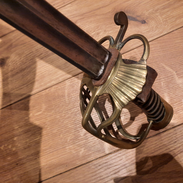 Modell 1756 103cm lang, ohne Scheide im original Zustand seit über 60 Jahren in der Sammlung zu versteigen. DHL Paket 15 Euro Versand oder Abholung. Es sind keine Stempelungen auf der Klinge zu sehen, wohlmöglich auf der Angel, da das Stück noch nicht geöffnet wurde ist dieses nicht ersichtlich. Die klingenbreite beträgt ca.9 mm zum Gefäß. Versand in die Niederlande ist möglich.