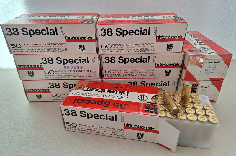Zum Verkauf stehen 450 Hirtenberger .38 Special, 148gr Blei-Scheibengeschoss - Patronen.