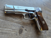 Pistole Browning GPDA8 mit Holz Griffschalen, zwei Stahlmagazine, 15 Stück 8mm Schreckschusspatronen. Kaliber 8mm PAK, PTB 389 in leicht gebrauchtem Zustand.