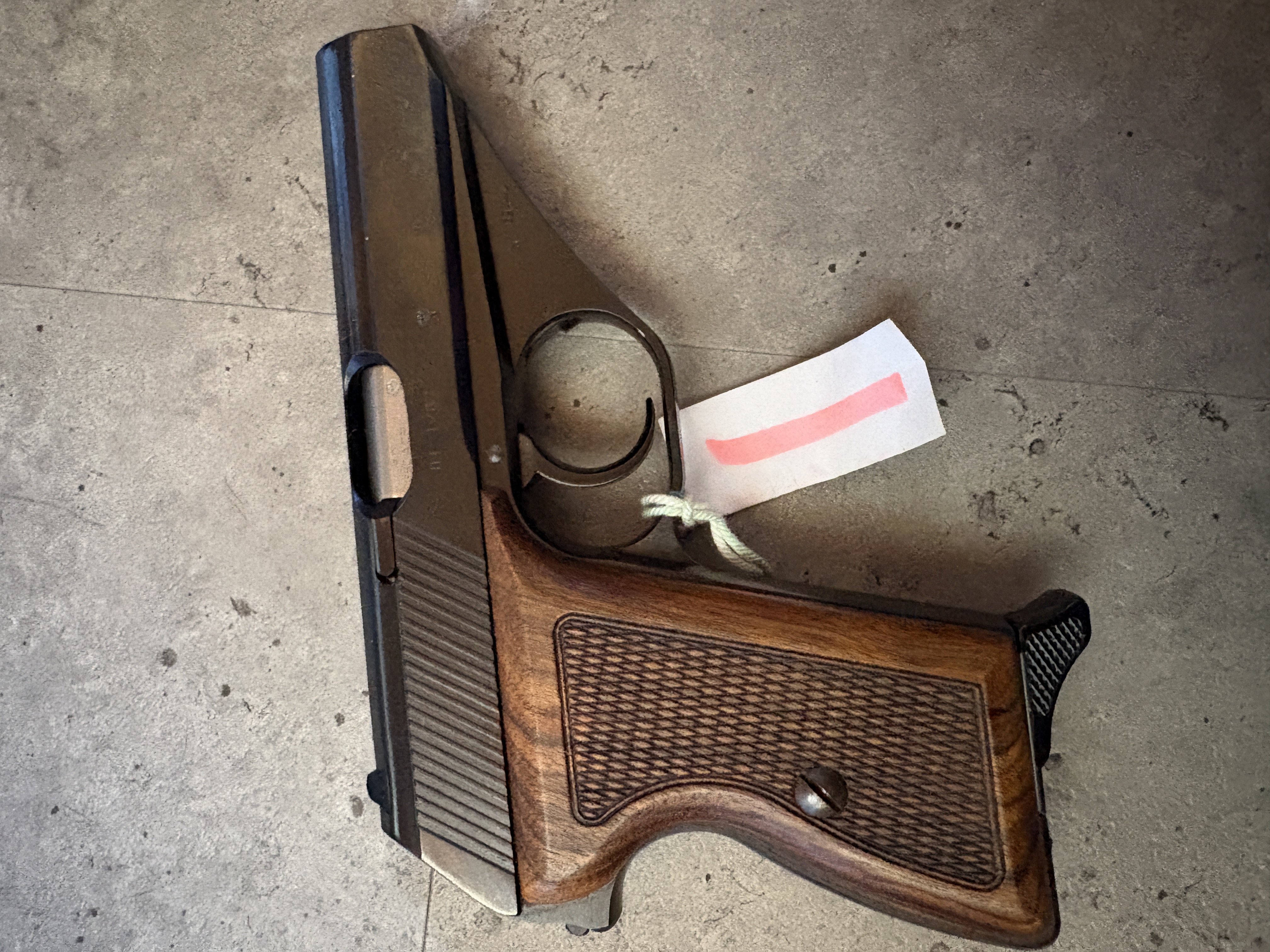 Sehr schöne Mauser HSC Pistole in 9mm Kurz .380 ACP. War Jahrzehnte Teil einer Sammlung. Waffe schiesst schön präzise alle Funktionen gehen. Zuschlagen bei der Gelegenheit. Direktversand an Europäische Händler möglich. Fragen Sie bitte nach den Versandkosten. Wie immer völlig unbearbeitet um Ihnen einen ehrlichen Eindruck des Zustandes zu ermöglichen.. Diese Sammelwaffe kann natürlich gerne, nach vorheriger Absprache in Wolfratshausen besichtigt werden