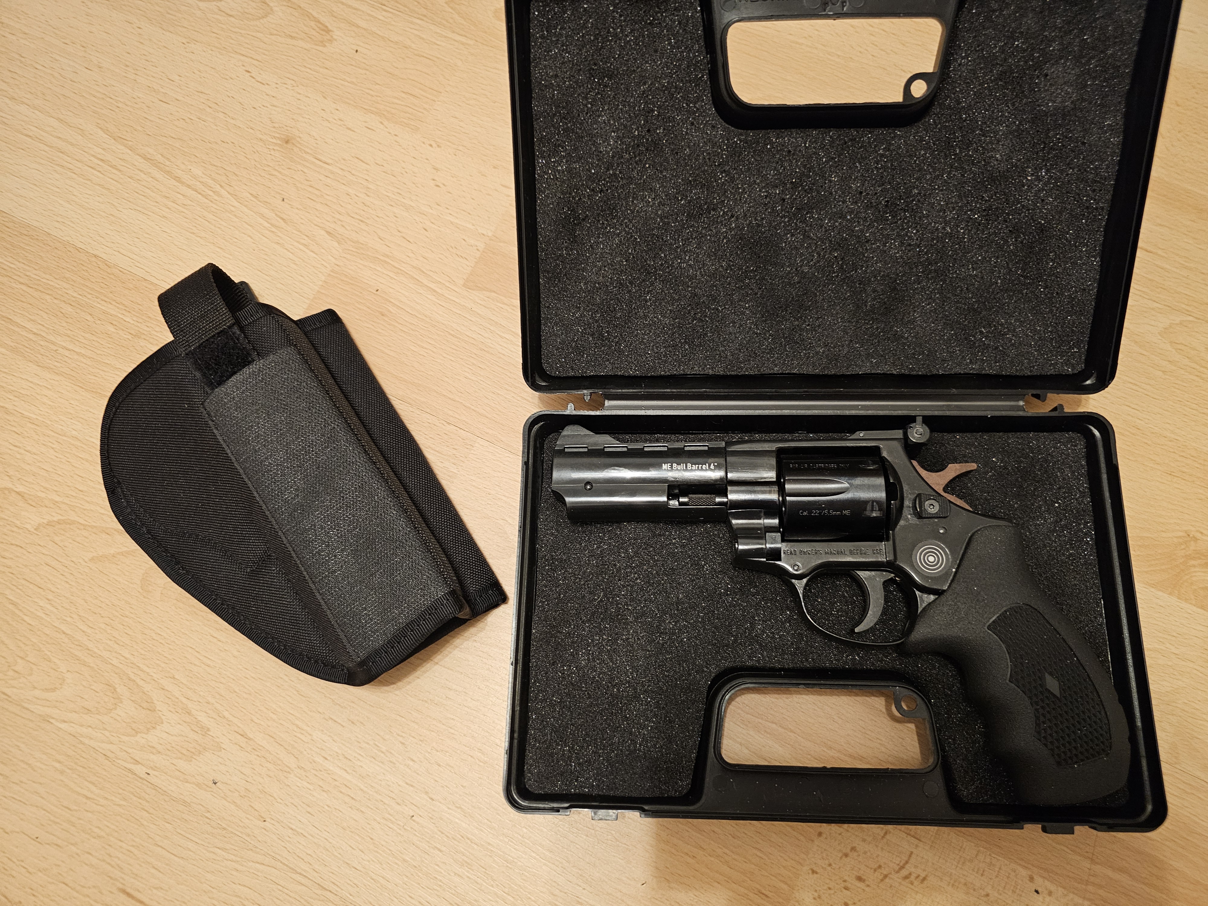 im Zuge meiner Sammlungsauflösung biete ich Ihnen die Gelegenheit, meinen ALLERLETZTEN Bull Barrel Revolver im Kaliber .22 (LEP) inklusive Holster zu erwerben. Der Revolver wurde ausschließlich mit den originalen LEP-Luftpatronen von ME benutzt. Diese stehen jedoch NICHT zum Verkauf!