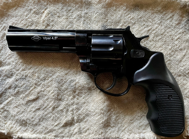 Zur Auktion steht ein Ekol Revolver Viper 4,5'' RK Kal. 9mm schwarz brüniert. PTB 1003. Leider hackt ab und zu der Abzug, Funktion ist aber gegeben.