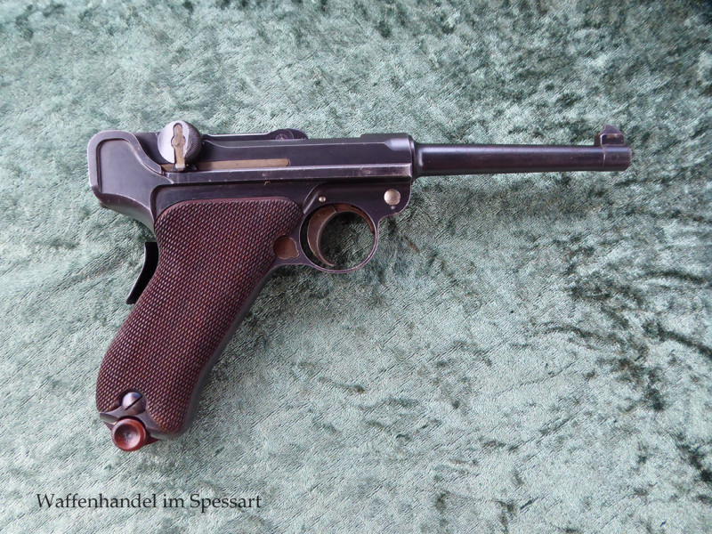 Hersteller DWM. Kal.7,65mmLuger. Ser.Nr. 19753. Nummerngleich. Scharfkantiges blankes Laufinnere. Gute originale Brünierung. Gute Mechanik. Originales dazugehöriges Magazin.