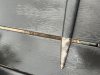 Schwere Buntmetallausführung. Die Belederung von Griff in gutem Zustand, Beschläge mit Sonnenräder, "Original Eickhorn Solingen", Nickelbeschläge, die Scheidenbelederung mit ganz leichten Beschädigungen die Tragekette aus Aluminium. Getragener Dolch mit Alterspuren. Zustand siehe Photos