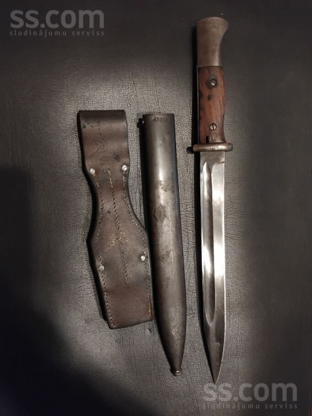 Verkauft wird ein seltener original K 98 Bajonett in schönem Zustand! Auf der Klinge und Scheide hersteller 43asw und die Seriennummern. Leider nicht nummerngleich. Die Klinge ist geschärft, und der Knopf funktioniert.Versandkosten: Innerhalb der EU: 7.90 Euro Päckchen (unversichert, kein Nachweis!!!). Versichertes Paket mit Tracking-Nummer 15 euro. (Ich empfehle versicherten Versand!) Für übergroße oder sehr schwere Pakete, bitte die Versandkosten anfragen. Zahlung ist möglich via Paypal und Überweisung . Werden mehrere Artikel ersteigert, fallen nur 1x Versandkosten an. Schauen sie die Bilder bevor bieten an. Bitte stellen sie gern ihre Fragen.Weitere Fotos auf Anfrage