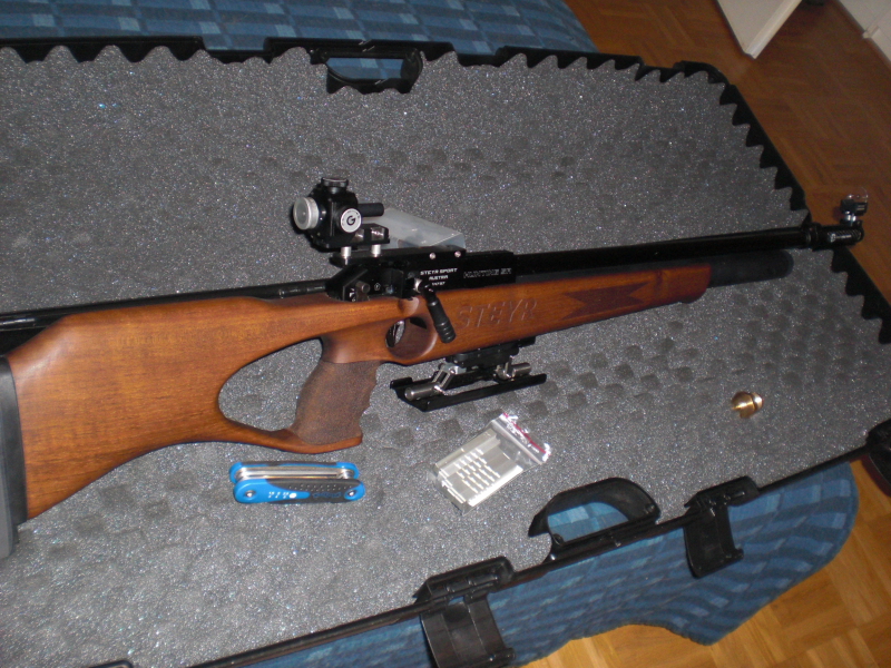 Es handelt sich um das halbautomatische Luftdruck Gewehr von Steyr , Hunting 5 Automatik, Folgende Änderungen habe ich gemacht --------------Lauf echt Carbon Mantel, Umbau auf Diopter ( Gehmann mit Irisblende ) Korn, Laufverlängerung, Handstütze, Visiererhöhung Tec -Hro,--Ich habe das Gewehr im August 2025 neu gekauft und nur ca 200 Schuss gemacht. Es sind 4 fünf und 1 einschuss Magazin dabei.------------ der Wert der Waffe inkl des Umbaus dürfte locker bei 3700 Euro liegen. Ich habe einfach keine Zeit für die Waffe und zum rumstehen ist sie einfach zu Schade.--------------Verkauf von Privat ohne Gewährleistung oder Umtausch. Die Waffe kann natürlich angeschaut und bei mir im Schützenverein Probe geschossen werden