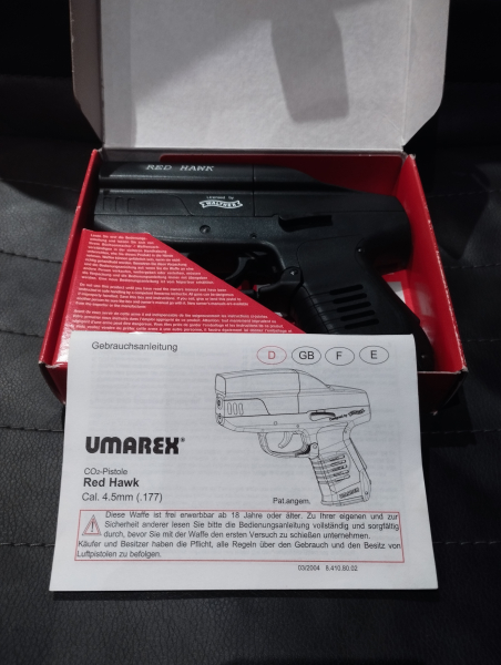 Ich biete hier eine Red Hawk im Kaliber 4,5mm von Umarex an, der Originalkarton und die Anleitung sind ebenfalls noch vorhanden.