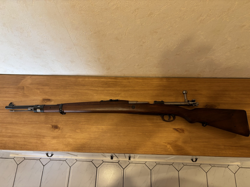 Waffe ist neu brüniert und der Schaft ist aufgearbeitet worden.