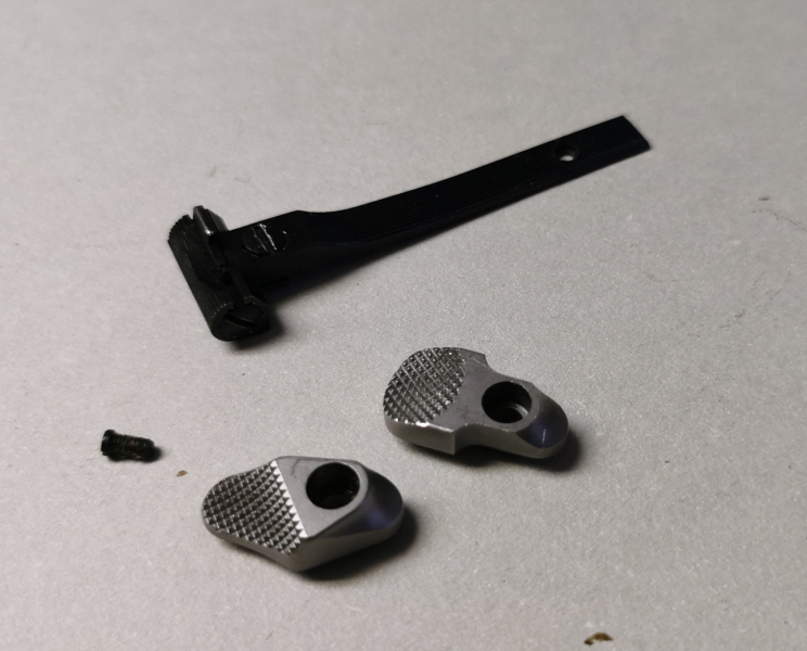aus Überbestand ein kleines Konvolut von Teilen für Smith & Wesson Revolver bestehend aus zwei Trommelschiebern und einem defekten Visier zur Ersatzteilgewinnung. .
