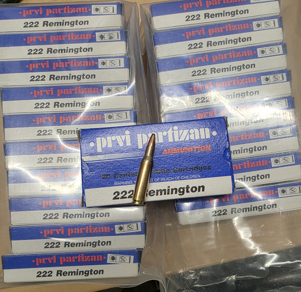 165 Patronen von PPU im Kaliber .222 Rem. Tlm Spitz.