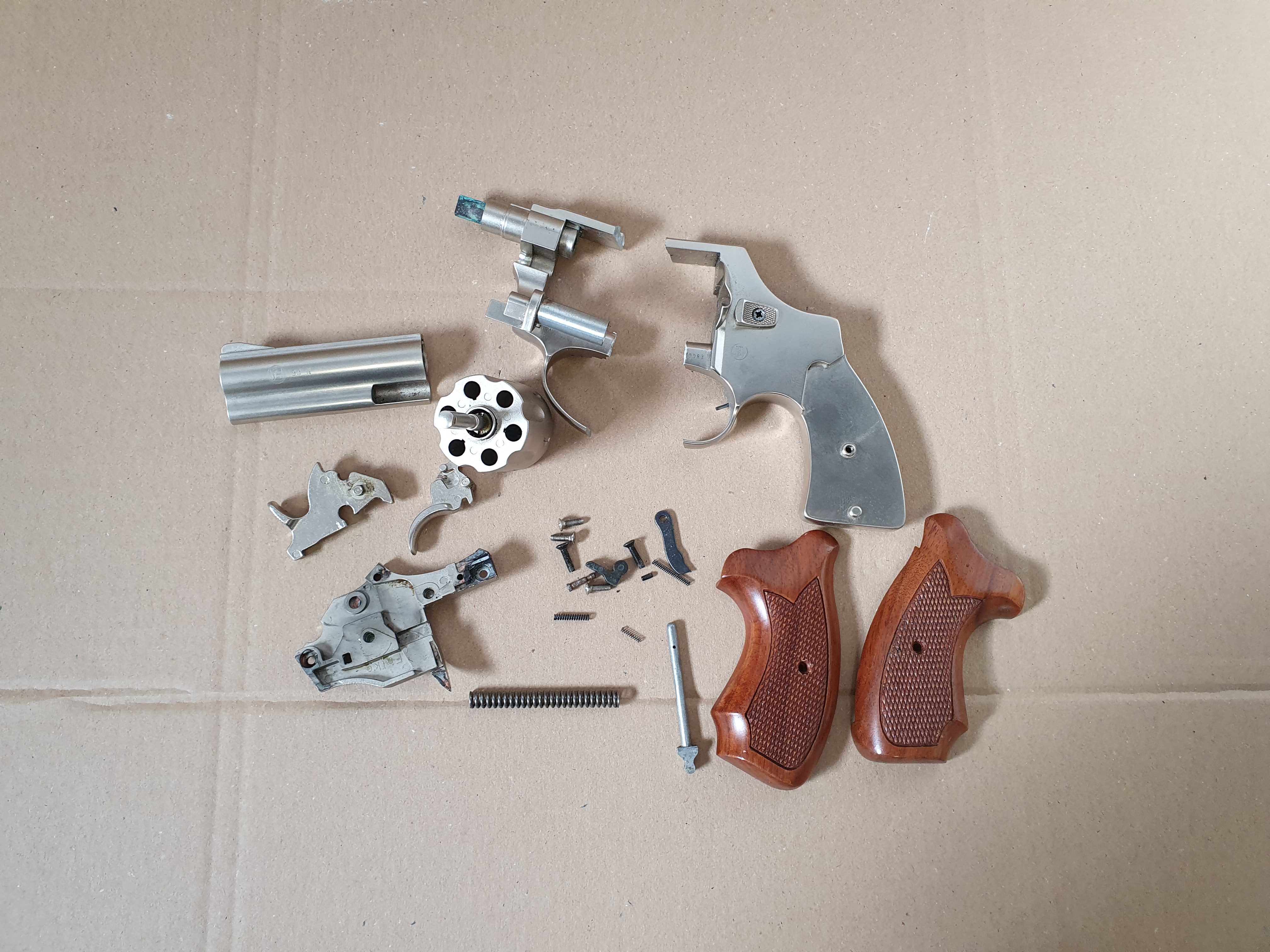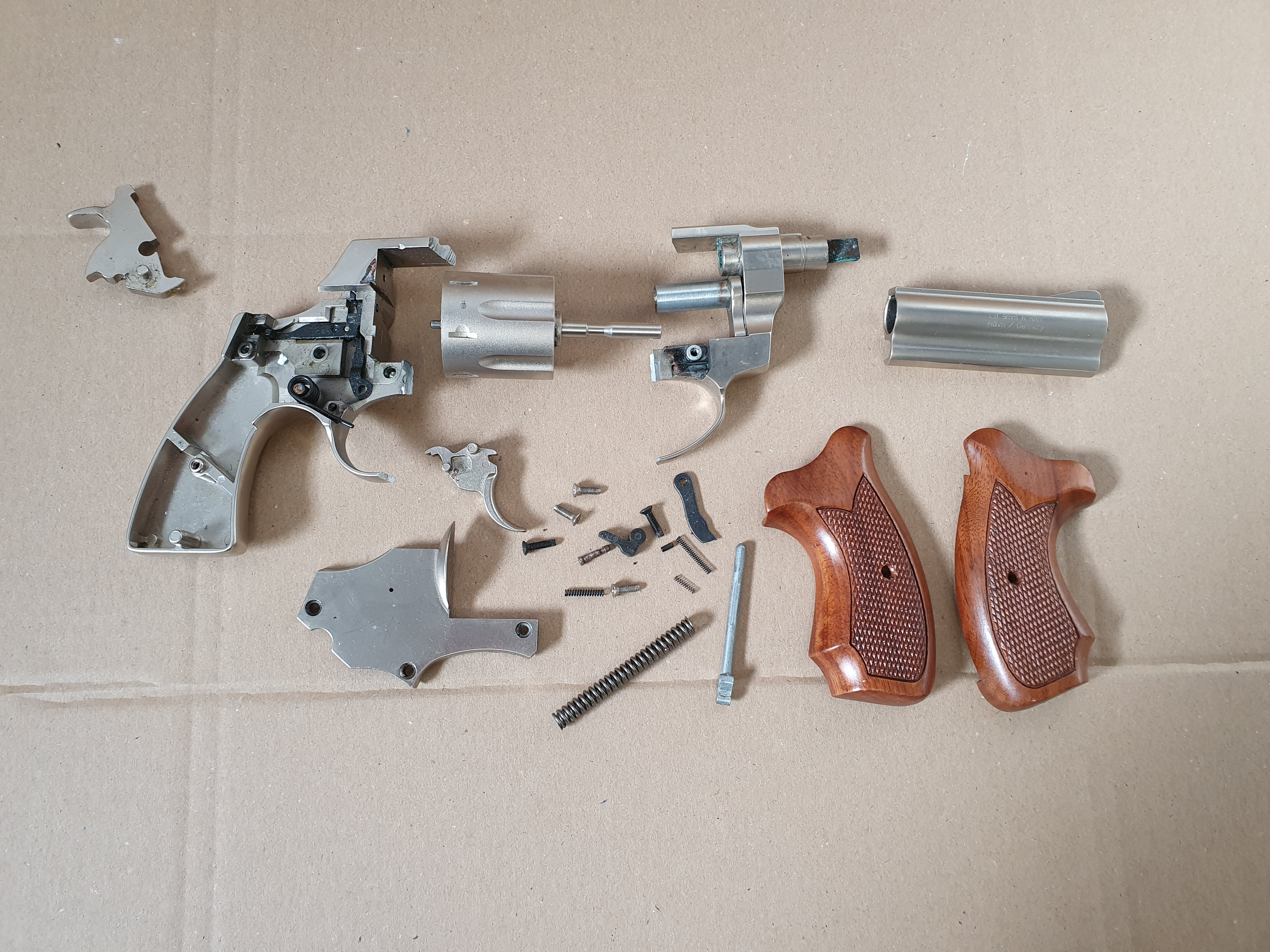 Gasrevolver Röhm RG 99 N als Ersatzteilspender mit Holzgriffschalen.