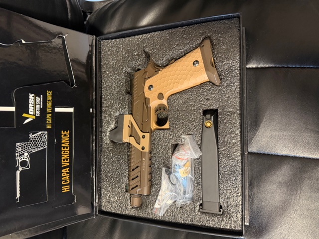 Airsoft: Vorsk Airsoft Hi-Capa 5.1 Vengeance mit HD5141 LPZ Vollmetall GBB 6mm BB Tan / Bronze System: GBB Magazin: Metall-Magazin 23 Schuss Zubehör: Red-Dot Visier, Dichtungs-Satz mit Gas- und CO2-Ersatznozzle, Vorsk Airsoft Patch Leistung: 1 Joule Hersteller: Vorsk Airsoft