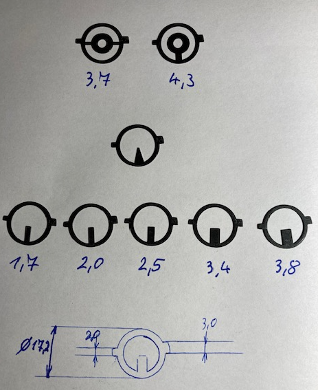 wichtigsten Maße erkennen kann - bitte kontrollieren, ob diese bei Ihnen passen (Außen-Ø 17,2 mm / linker Zapfen 2,0 mm breit,