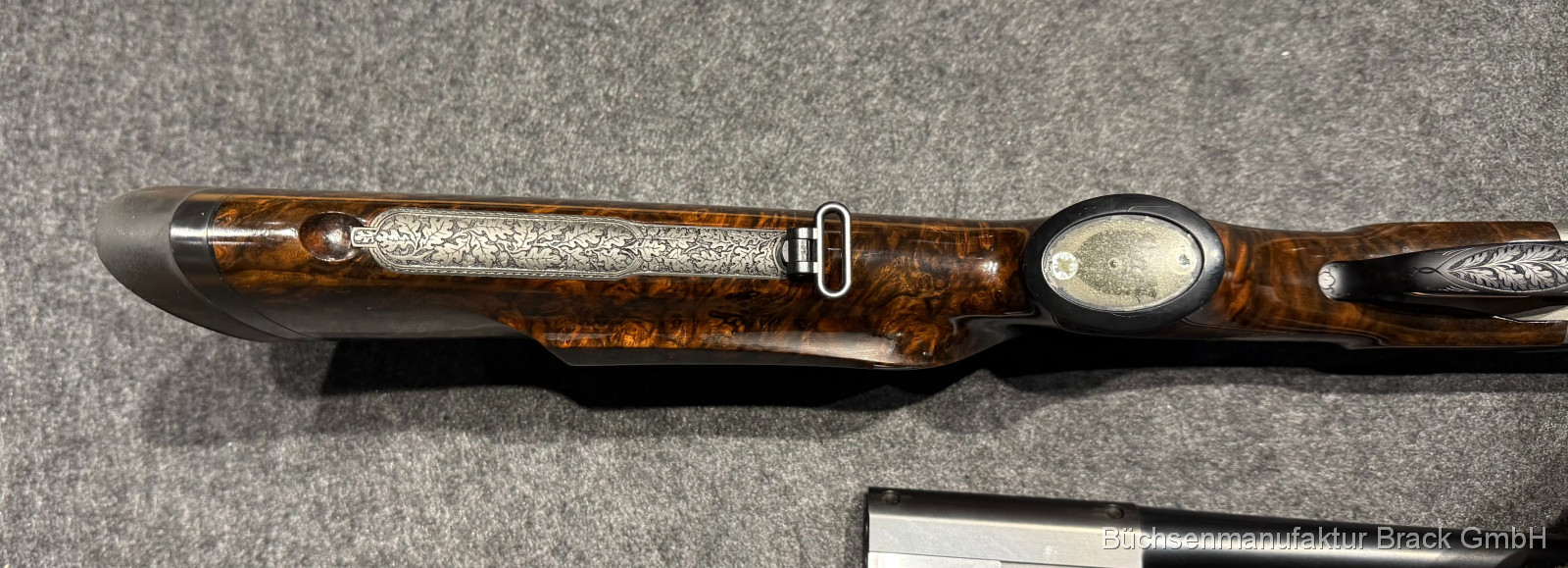 Abzugsbügel aus Stahl graviert mit Eichenlaubgravur
