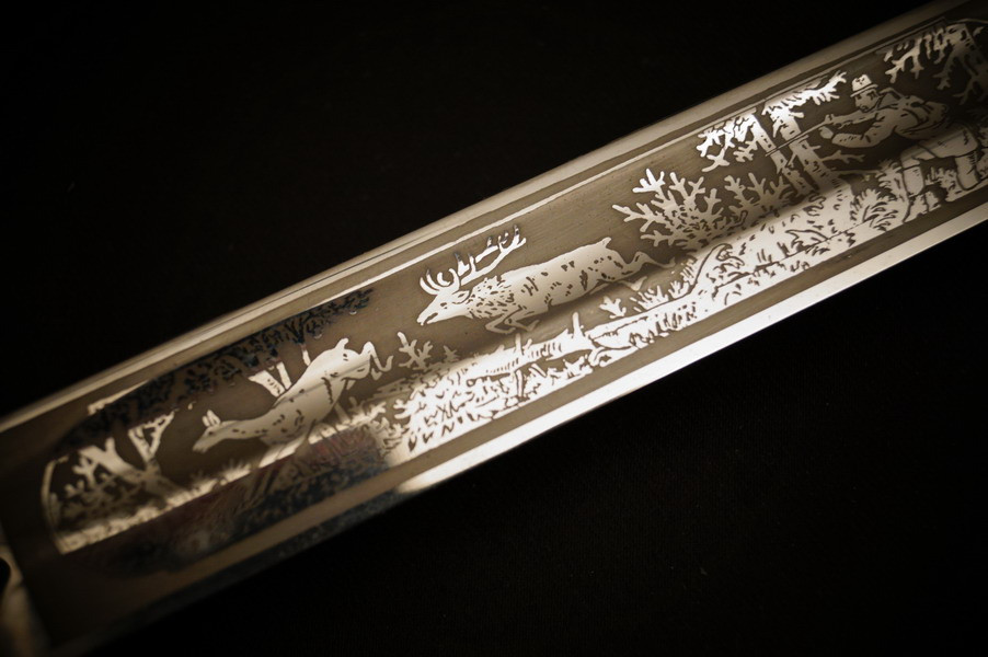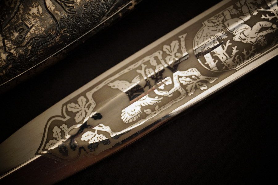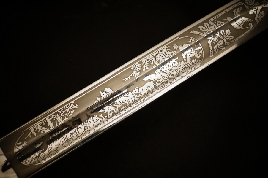 WK2 Eickhorn Ehrenhirschfänger, Prunkstück, dreifache Ätzung