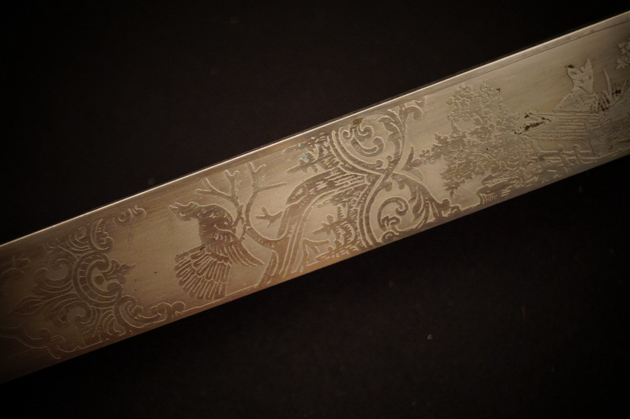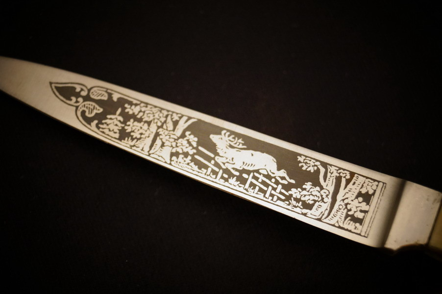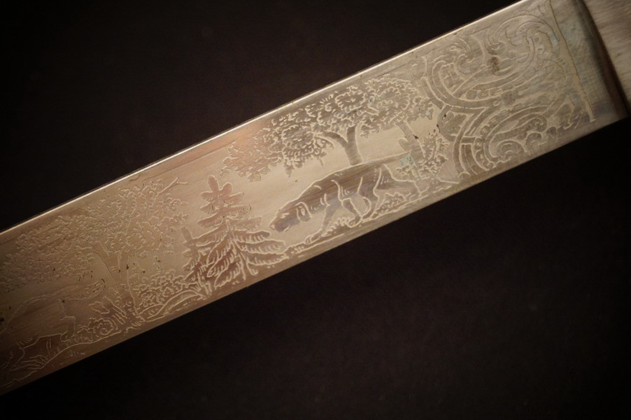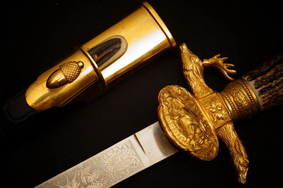 WK2 Weyersberg Solingen, Prunkhirschfänger m. Messer, Ätzung, Prunkstück