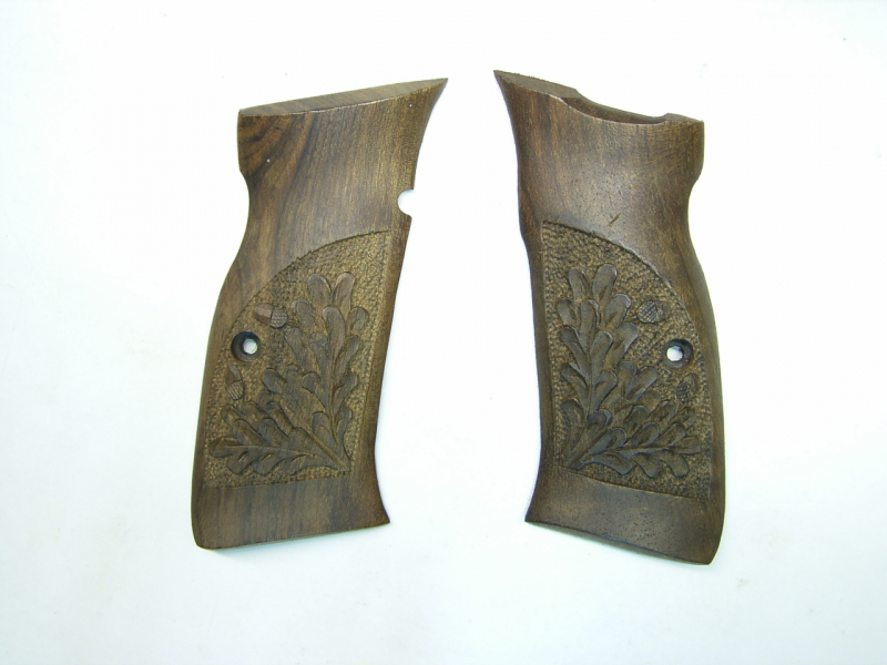 Sie bieten hier auf ein Paar neuwertige Griffschalen für die CZvz Pistole 75, Nußbaum-Eichenlaub geschnitzt. Privatverkauf, kein Rückgaberecht und Gewährleistung. Der Bieter erklärt sich durch sein Gebot mit diesen Bestimmungen einverstanden.