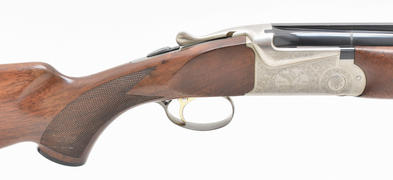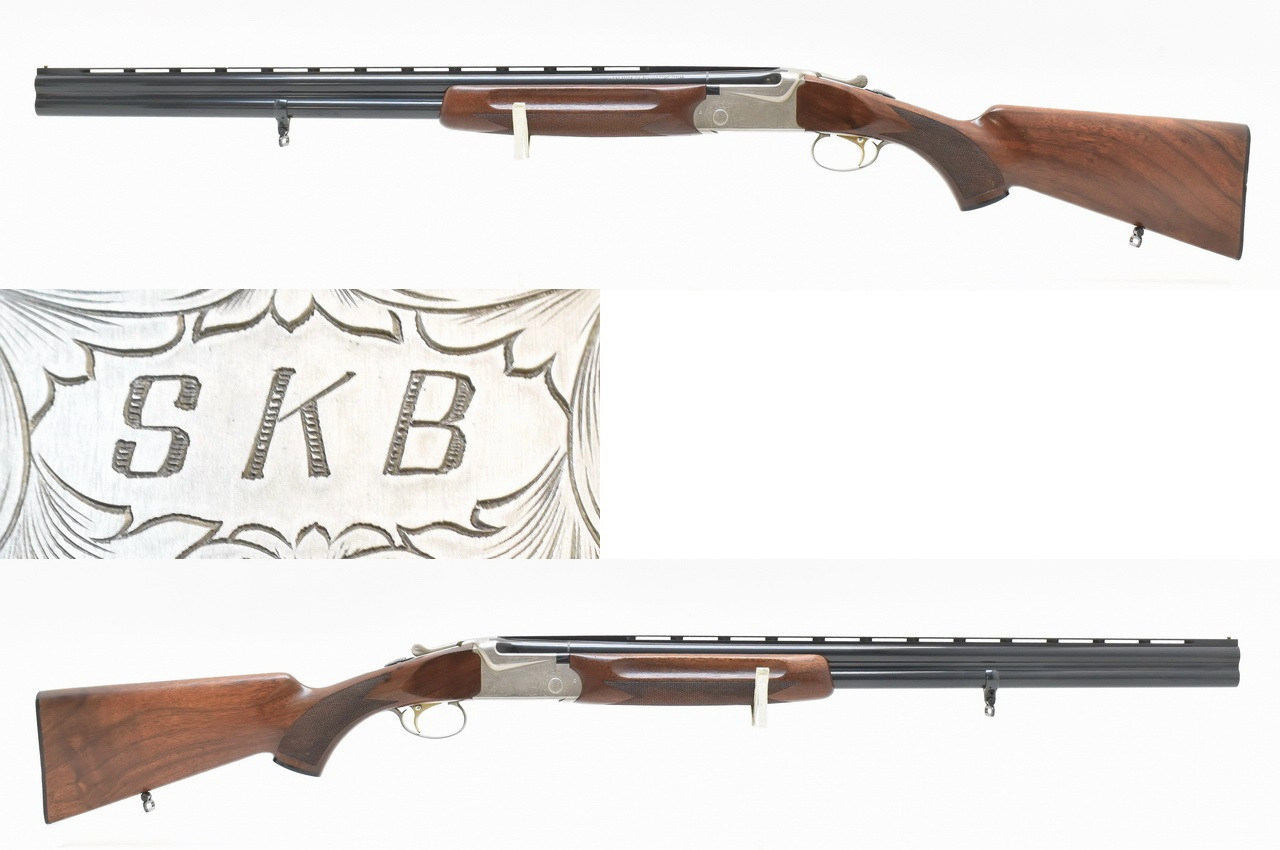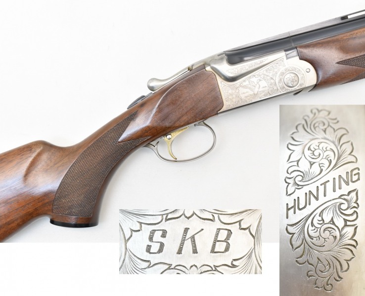 New SKB Arms Company Modell 605 Hunting. Gravierte, silbergraue Stahlbasküle mit doppelter