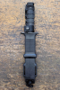 Originales M9-Bajonett der US-Army hergestellt von der Ontario Kife Company / USA. Neu mit Originalverpackung. Länge: 31cm, Klingenlänge: 18cm, Klingenbreite: ca. 3,6cm, Klingendicke: 6mm, Sägerücken, Klingenform: ähnlich Bowiemesser (Clip Point). Vollerlkonstruktion (full tang), Griff- und Scheidenmaterial: Kraton (extrem widerstandsfähiger Kunststoff, schwarz). Trageweise/Befestigung: Biancchi-Clip (Metallbügel und Kunststoffschnalle, kompatibel mit den meisten Gürteln und Holstern, siehe Fotos), Drahtscherenfunktion (ähnlich der sowjetischen Bajonette). Das Bajonett ist mit dem Schraubendreher an der Schneidplatte (Drahtschneider) komplett in seine Einzelteile zerlegbar. Markierungen: „M9 Ontario Knife Co. USA“ auf der Klinge (linke Seite), „ITW NEXUS Wood Dale, IL 60191“ auf Kunststoffschnalle. Das M9 wird seit 1986 bei der U.S. Army eingesetzt und ersetzte dort die älteren M7-Modelle. Das Bajonett stammt aus meiner Sammlung, die nun aufgelöst wird. Aktuell ist das M9 in Deutschland und Europa neu kaum mehr zu bekommen bzw. bei den diversen (Online-)Shops seit Monaten nicht mehr verfügbar oder ausverkauft – von billigen Kopien aus Fernost einmal abgesehen. Versand als versichertes DHL-Paket. Da Privatverkauf keine Garantie / kein Umtausch. Bitte Altersnachweis beachten (frei ab 18 Jahren)!