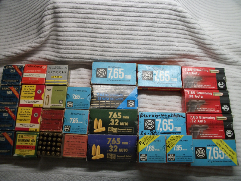 Sie bieten auf insgesamt 1100 Schuß Sammlermunition in 7,65 Browning. Munition war bei mir immer trocken und warm gelagert. Es handelt sich hier um VM Geschoße, Plastiktrainingsmunition, VM Flachkopfgeschosse, Bleirundkopf verkupfert und Exerziermunition. Munition darf gerne auch nach tel Vereinbarung abgeholt werden. Viel Erfolg beim Bieten.