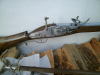 Biete euch einen nachbau einer Rad-Luntenschlossmuskete an.Länge 158,cm kal 14mm Schaft aus Buche in nuss gebeizt.Schloss mit Radabdeckung Sicherung automatischer Pfannendeckel Radzündung und Luntenzündung .Gabel mit zusätzlicher Luntenhalterung wenn alles ausfält kann man auch mit der Lunte zünden!!!!Oder den Nachbarn sei Geschütz zünden!!!Mit dazu sind ein paar Kugeln Schlüssel Blei für den Pyrit zum einschlagen und die Beschussbescheinigung.Das ist der Letzte Lange Lulatsch der von meiner seite kommt,Gruß mimono