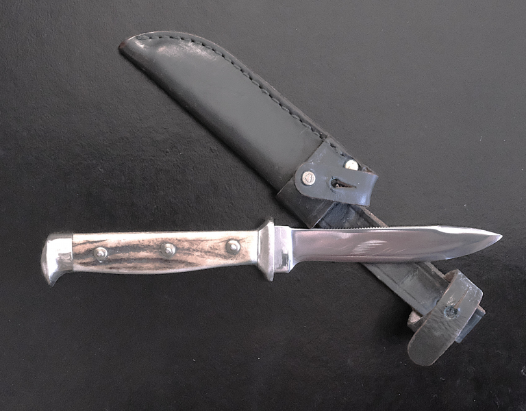 Das Messer wurde benutzt und fachlich nachgeschliffen. Vorne an der Parierstange besteht eine leichte Einkerbung, die man wohl herausschleifen könnte (aber nicht muss)