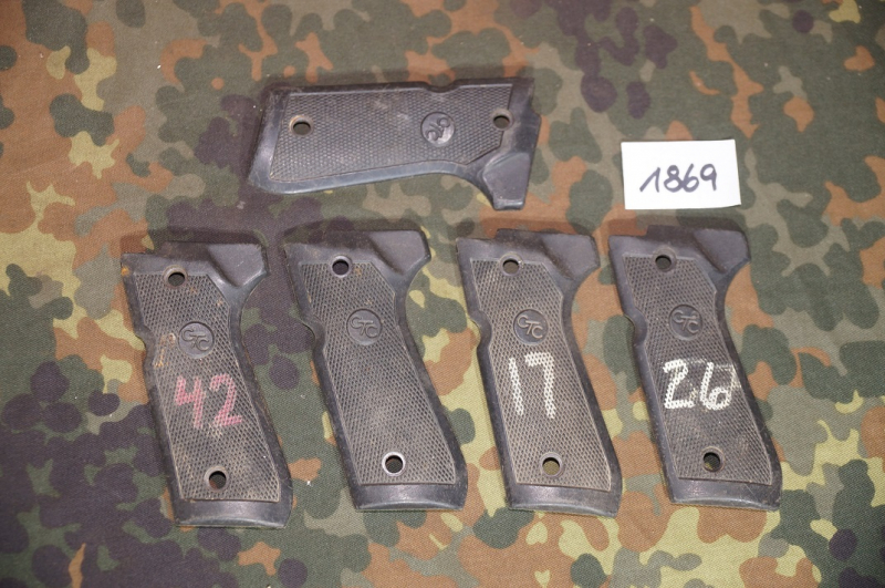 Achtung aufgepasst: sie bieten hier auf 5 Stück Griffschalen (linke Seite) für die Beretta 92 original von der US ARMY. Zustand, siehe Foto. Sie erhalten genau die auf dem Foto abgebildeten Ersatzteile. Beachten Sie auch unsere weiteren Auktionen.
