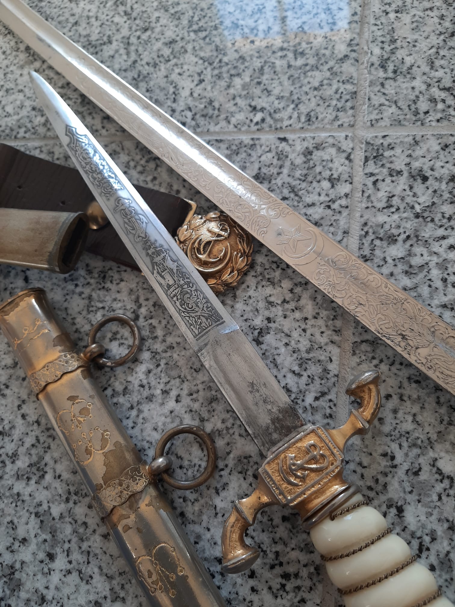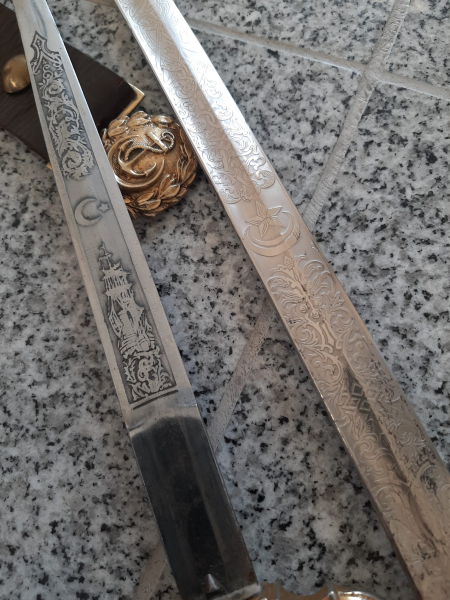 ich biete einen türkischen Marinedolch, einen türkischen Marinesäbel und ein Koppel an.