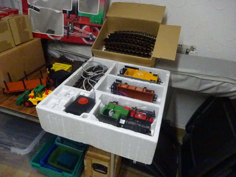 Das Spielzeug für den Garten im Frühling: eine Lehmann Großbahn mit Grundpackung und diversen Erweiterungen, 2 Locks, ca. 30 Schienen, diverse Teile, 3 Waggons mit Zubehör wird heute noch von Märklin vertrieben und kostet knapp 2000 Euro.