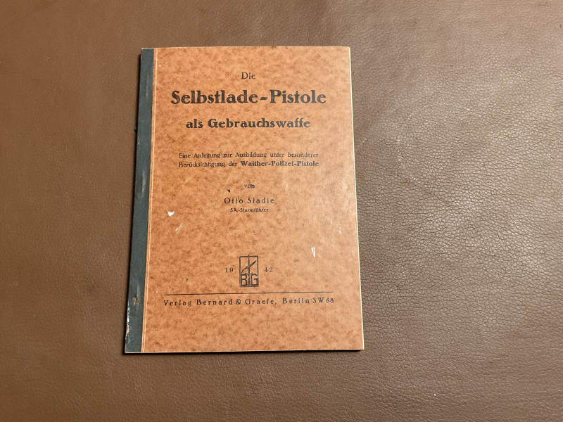 Zum Verkauf ist eine Anleitung zur Ausbildung unter besonderer Berücksichtigung der Walther-Polizei-Pistole von Otto Stadie von 1942.