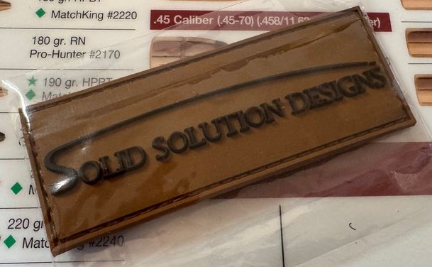 Zum Verkauf steht ein taktischer Patch der Marke Solid Solution Designs in brauner Ausführung und mit Klett-Rückseite (Hook & Loop) zur einfachen Befestigung an passenden Flächen wie Jacken, Rucksäcken oder taktischer Ausrüstung.