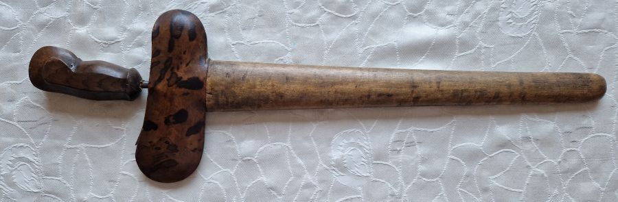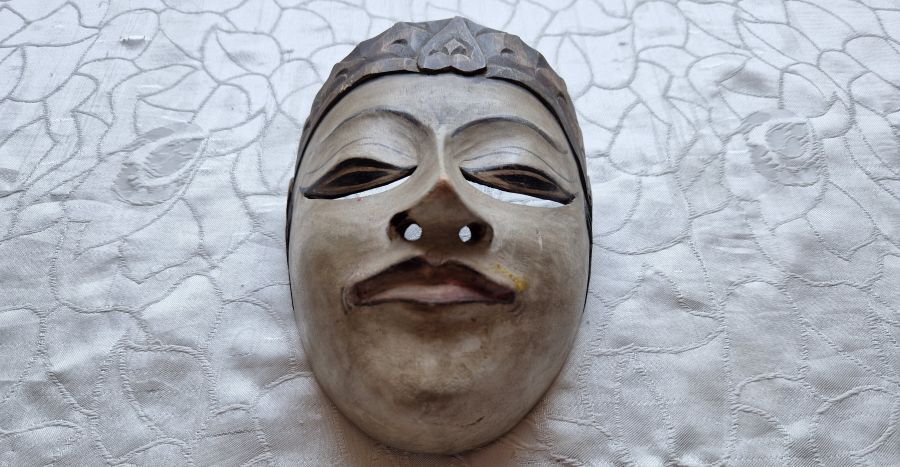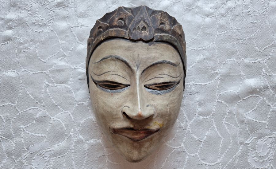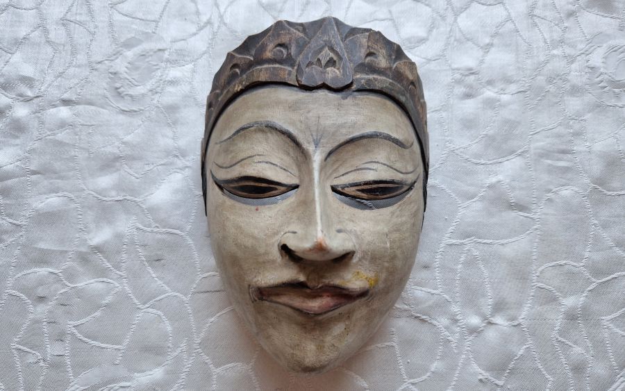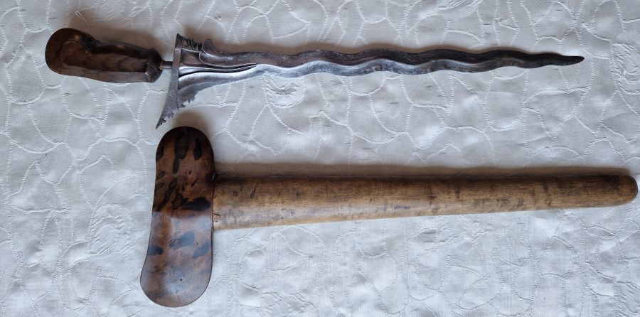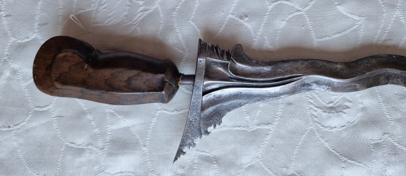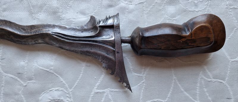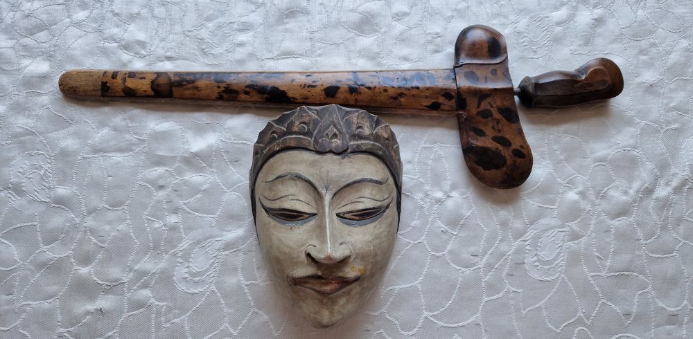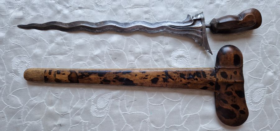 Antiker Kris und geschnitzte, bemalte Holzmaske, indonesisches Gebiet, 19. JH.