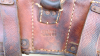 Biete hier eine originale breitere Patronentasche für das Gewehr 98 aus dem 1. Weltkrieg zum verkauf an. Der Hersteller ist Benny Spiro aus Hamburg von 1915, wie man es auf dem Bild auch gut sehen kann. Zum Zustand muss ich leider sagen, dass der Vorbesitzer von den zwei Taschen vorne, vom Leder etwas herausgeschnitten hat. Das Leder ist noch relativ beweglich. Die Stege zur Trennung der Patronenstreifen sind bei allen drei Taschen vorhanden. Bei den Laschen fehlt eine und die andere liegt lose bei. Jede diese einzelnen Taschen konnte mit 3 Ladestreifen 8mm Mauser beladen werden, anstatt nur mit 2 Ladestreifen. Die Naht an der letzten Tasche wurde anscheinend getrennt. Die Metallteile sind rostig. Wird hier ausschließlich als Ersatzteilspender, Restaurierungsobjekt oder beleg Stück angeboten. Sprich, das es Defekt ist. Bilder zeigen auch den Zustand der angebotenen Ware an und sind Teil der Auktion. Beim Händler werden diese Stücke, auch in diesem Zustand relativ Hochpreisig zum verkauf angeboten, ich stelle es hier zum fairen Startgebot von einem Euro ein. Da ich Privatverkäufer bin, gebe ich keine Garantie für Original und mache auch keine Rücknahme.