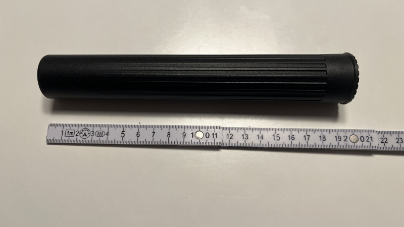 Länge ca. 195mm, schließt bündig mit dem Lauf bei einer 535mm Lauflänge ab.