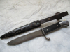 Stahlscheide mit Originallack und mit einer innenliegenden Feder. Lederhänger mit Schlaufe und funktionsfähigem Druckknopf.