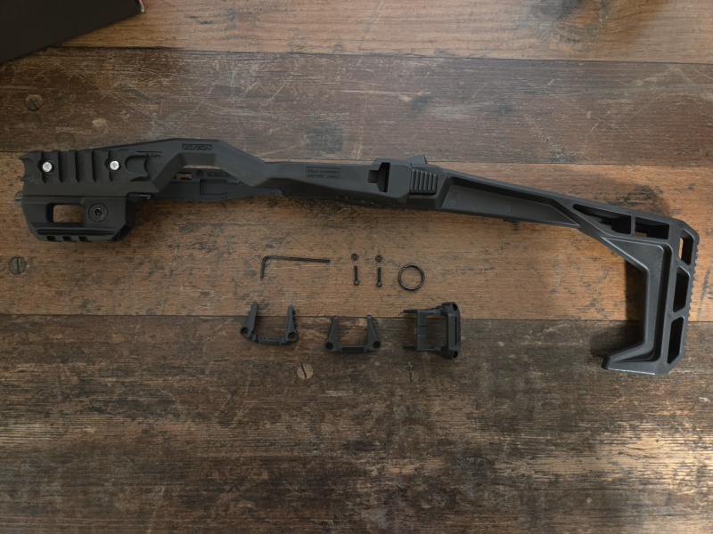 Verkaufe einen selten genutzten Anschlagschaft für Glock Pistolen. Recover 20/20N. Es handelt sich um eine Ultra Lite Version mit Klappschaft. Ich habe (robust) eine seitliche Picatiny Schiene verbaut.