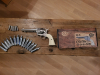 Colt Co2 Single Action Army Revolver in 4,5mm. Kaum geschossen, daher fast neuwertiger Zustand. Mit den 6 original Reduzierpatronen, Co2 Kartuschen, Bedienungsanleitung und original Verpackung, wie auf den Bildern zu sehen. Privatverkauf ohne Gewährleistung und Rücknahme.