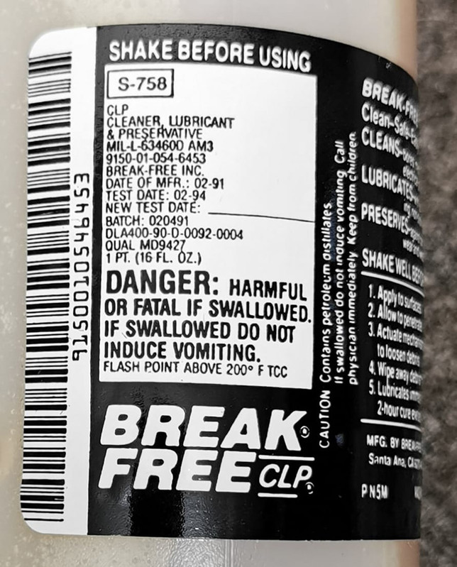 BREAK-FREE CLP Öl 473ml in der U.S. Army Pumpflasche.